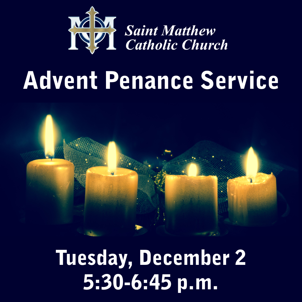 Advent Penance Service, Tuesday, Dec. 2. Saint Matthew will be hosting a special Advent Penance Service on Tuesday, Dec. 2, from 5:30-6:45 p.m. Please take the time to stop [...]