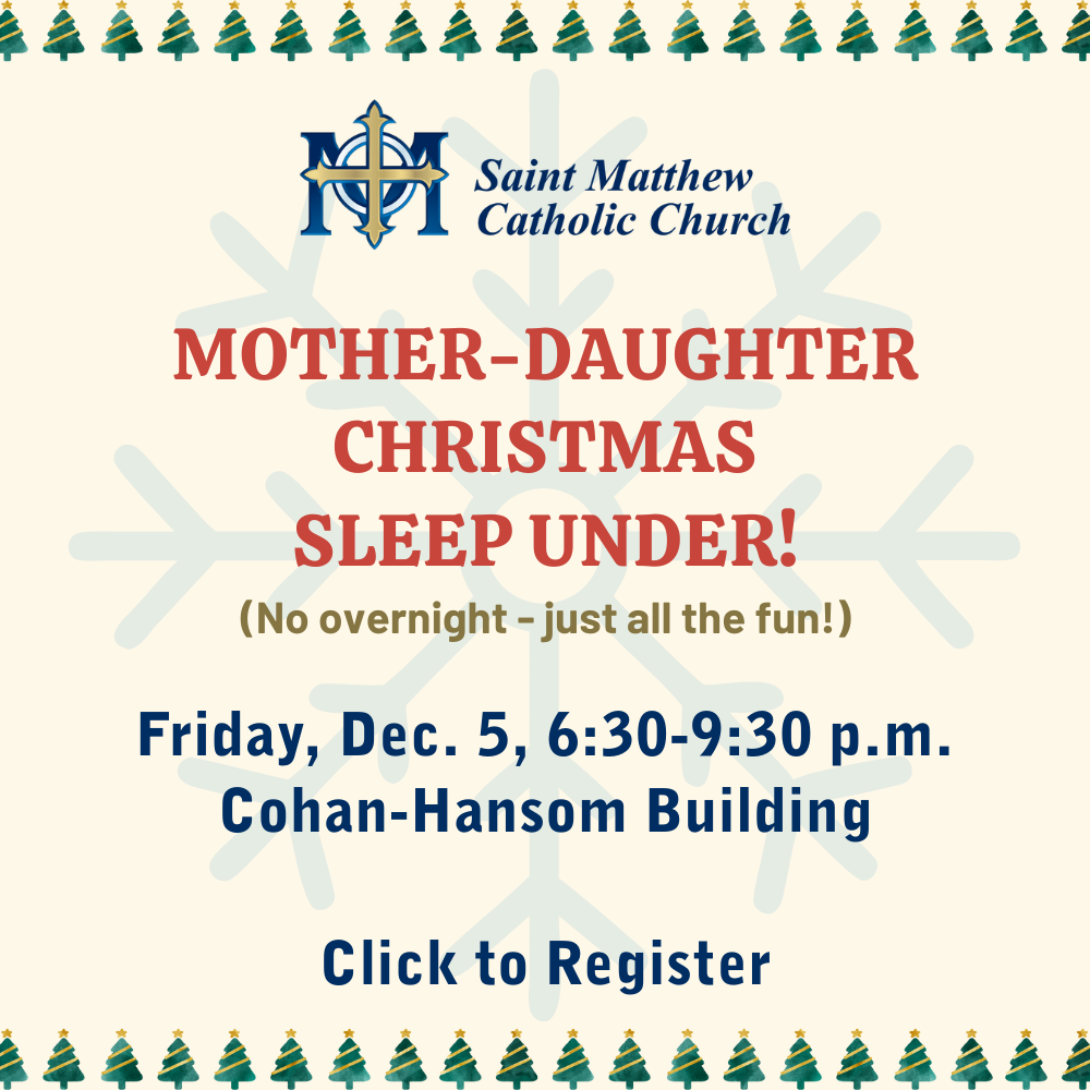 Mother Daughter Sleep Under Friday, December 5, 6:30-9:30 p.m. Our St. Gianna Circle Mothers Ministry invites you their Mother Daughter Sleep Under on Friday, December 5, from 6:30 to [...]
